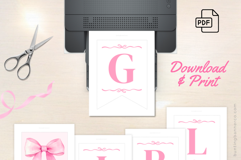 If you are looking for a pink bow baby shower banner that feels modern, sweet, and easy to style, this printable bunting is the perfect finishing touch for your party decor.