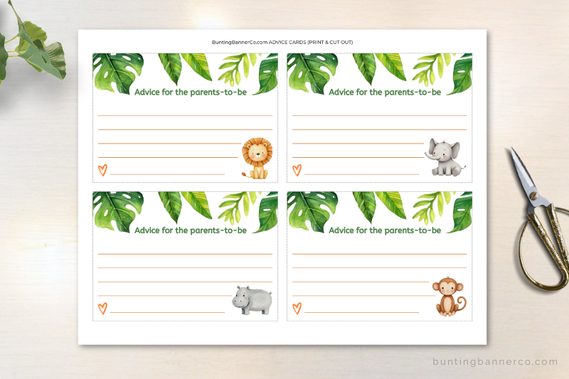 ✿ 1 x PDF with Printable Safari Baby Shower Advice cards (card size: 5 x 3.5 inches – 4 per page)